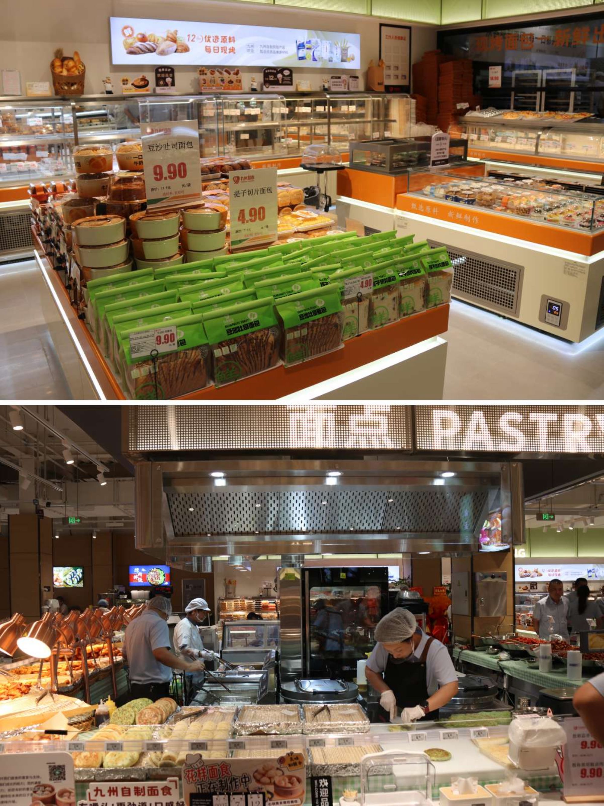 本次門店調(diào)改大力投入自營(yíng)烘焙、面食和熟食;在店內(nèi)開(kāi)設(shè)了九州自營(yíng)烘焙面包房,現(xiàn)場(chǎng)加工制作烘焙品類130多種;門店對(duì)面食、熟食及部分小吃實(shí)行自營(yíng),每日可提供300多種豐富多樣的品類,能夠有效滿足顧客各種消費(fèi)需求。本次門店調(diào)改還顯著豐富了即食選擇,新增加了熱鹵、米線、面條、關(guān)東煮等100多款現(xiàn)制美食,新鮮供應(yīng),當(dāng)日出清,確保食品安全,讓顧客買得放心,吃得安心。
