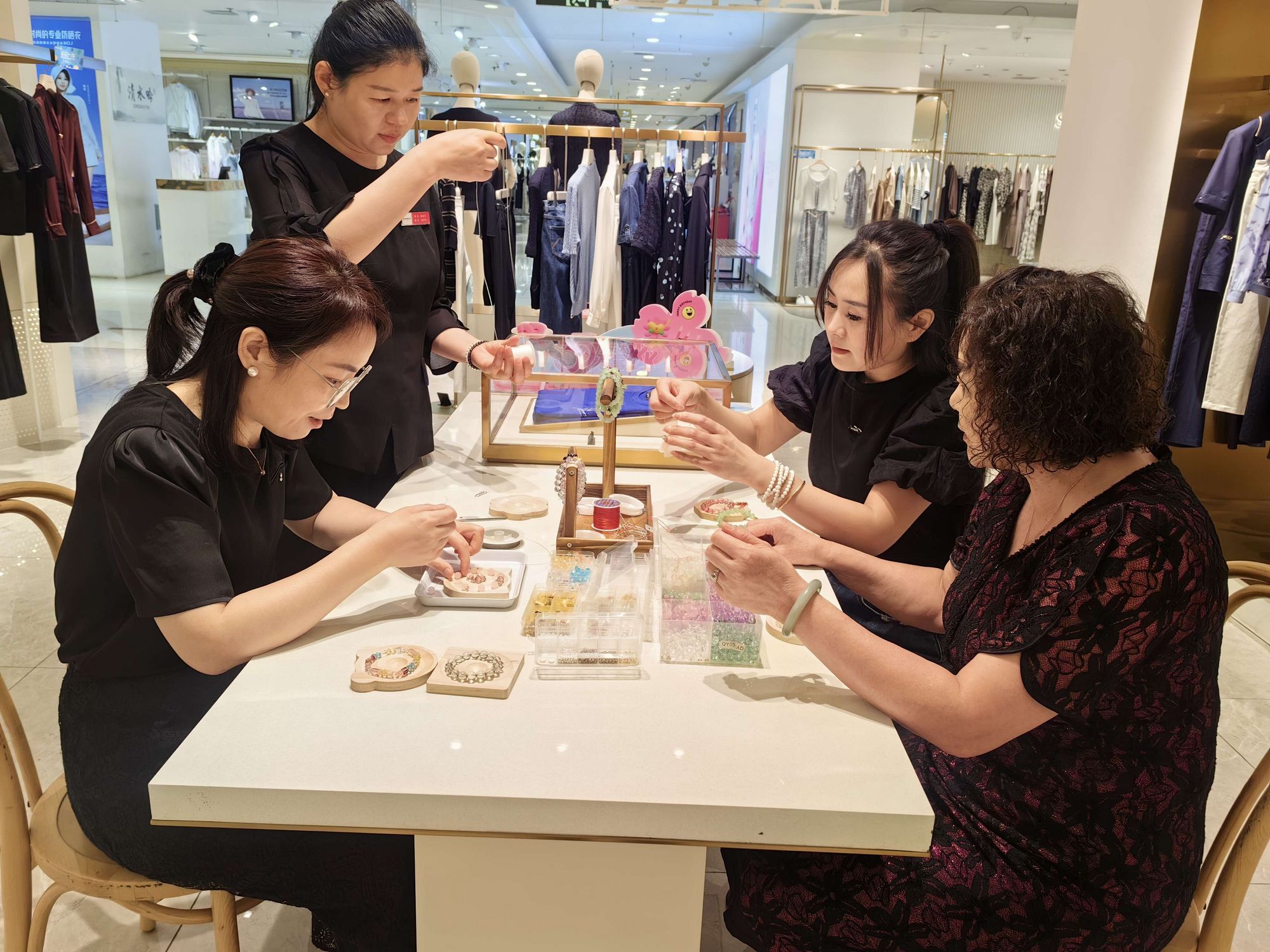 此次活動(dòng)以品牌經(jīng)典設(shè)計(jì)為靈感,邀請女性顧客親手創(chuàng)作專屬飾品,在互動(dòng)中感受娜爾思“精致生活”的品牌理念;顒(dòng)現(xiàn)場氛圍溫馨,參與者們互相分享設(shè)計(jì)靈感,不少顧客將成品與娜爾思當(dāng)季服裝搭配,碰撞出獨(dú)特風(fēng)格。